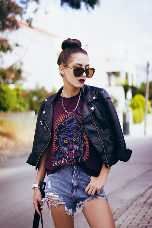 The key to not looking like you’re wearing your barbie doll’s clothes is to pair your shorts with a top that gives more coverage. If you want to go the crop or bandeau route, layer it with a chic moto jacket or denim jean jacket. It’s all about balance.