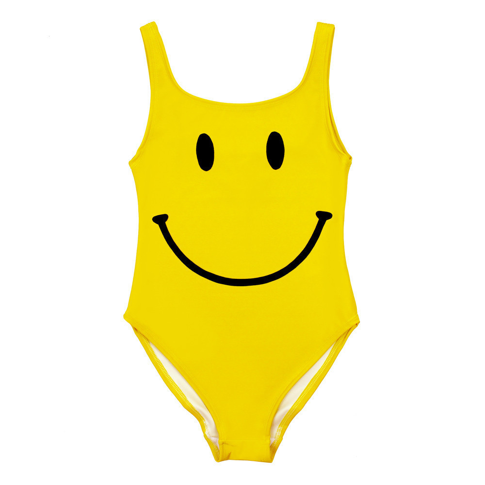 A smiley face adds a fun detail to an already bold yellow suit. You can opt for a solid color or mixed prints for a simple yet stylish look.
