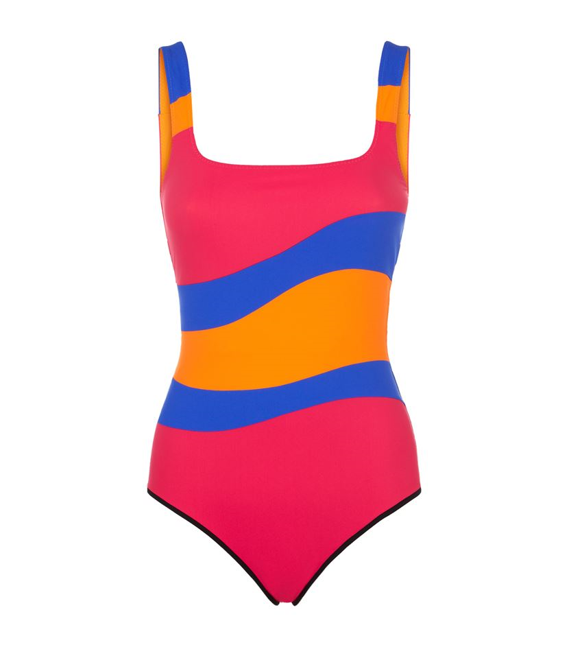 A multi-colored swimsuit is a cool way to take the dull out of your one-piece and make it daring. Love how these colors complement each other while still standing out.