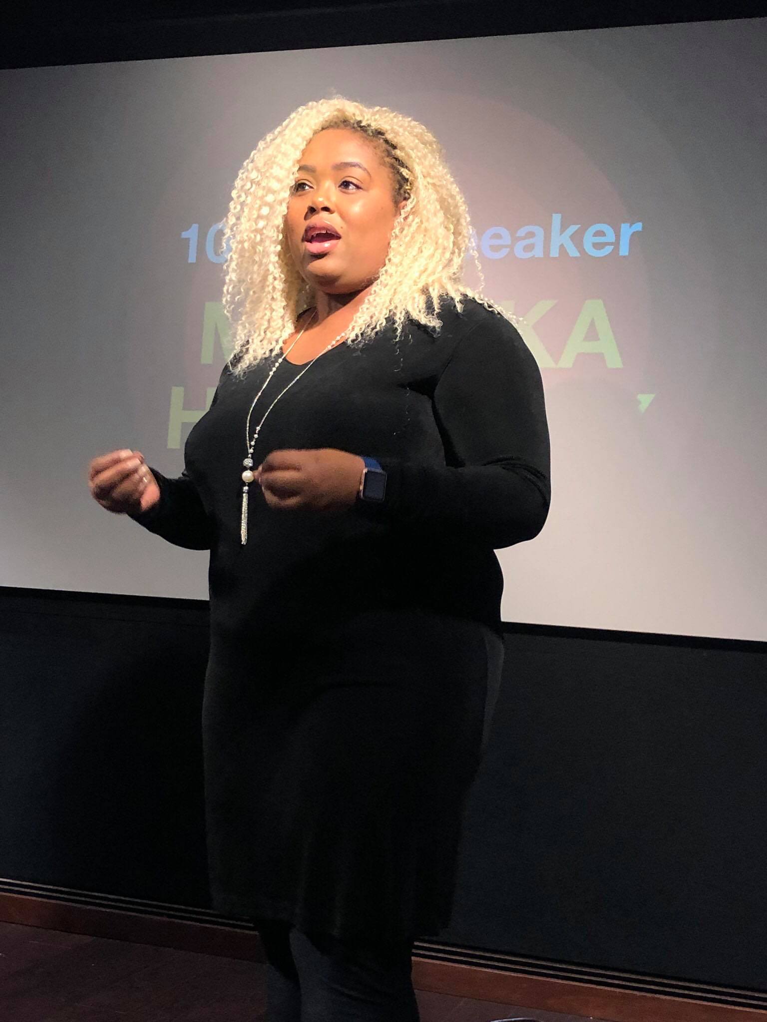 Maleeka Holloway, speaking at an event on behalf of The Official Maleeka Group Agency