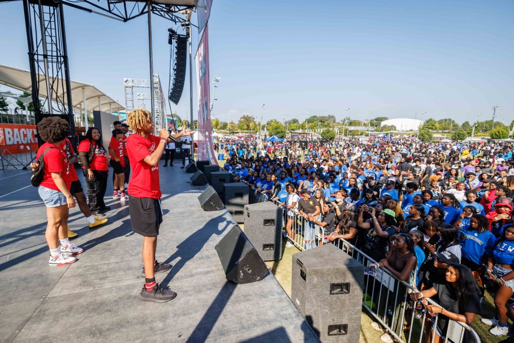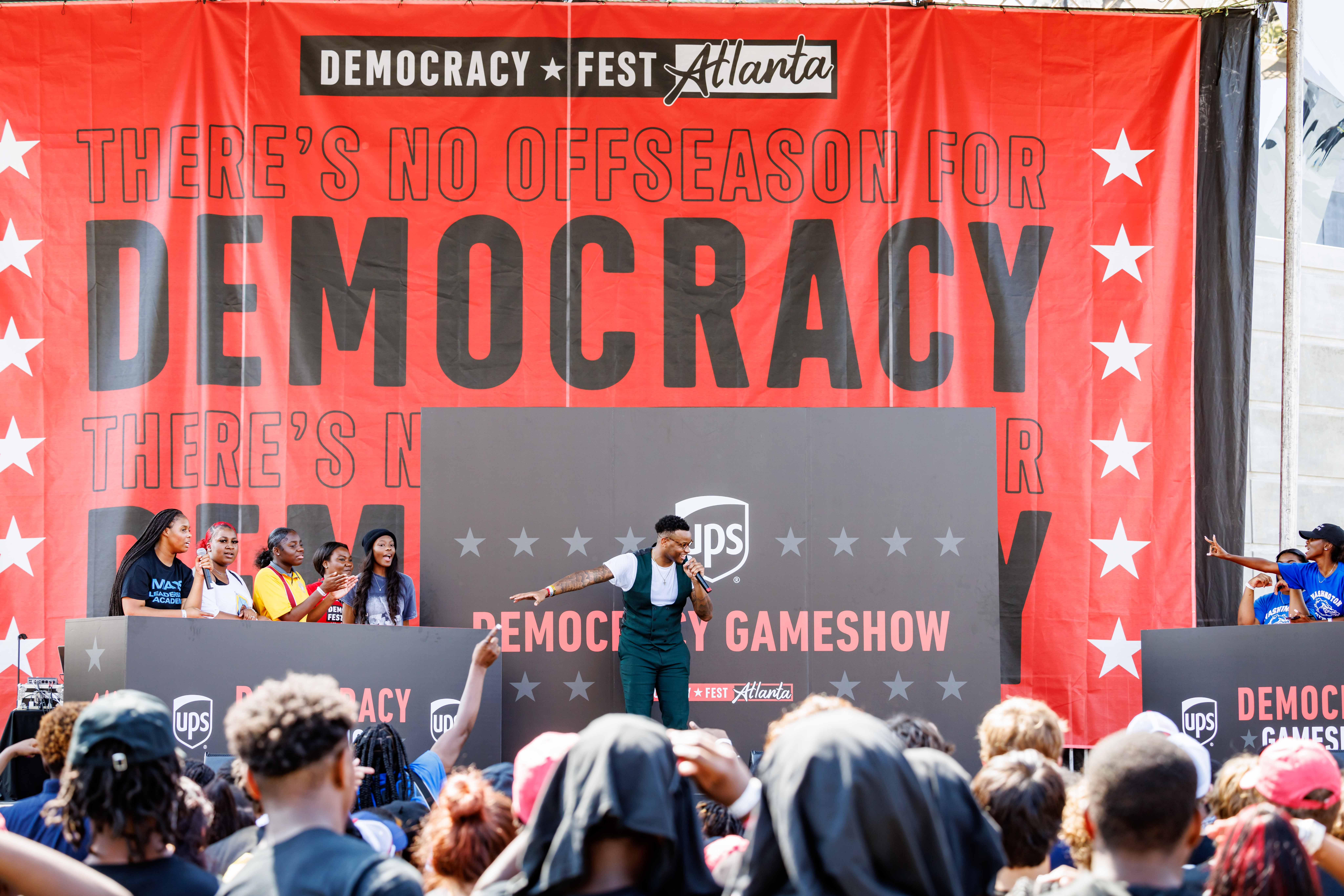 The festival was held at The Home Depot Backyard at the Mercedes Benz Stadium in Atlanta, GA. Democracy Fest brought over 3,000 11th and 12th grade Atlanta Public School (APS) students to celebrate civic education, community engagement, and youth empowerment.